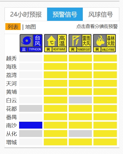 受风暴的影响,广州的许多地区发布了风暴和强